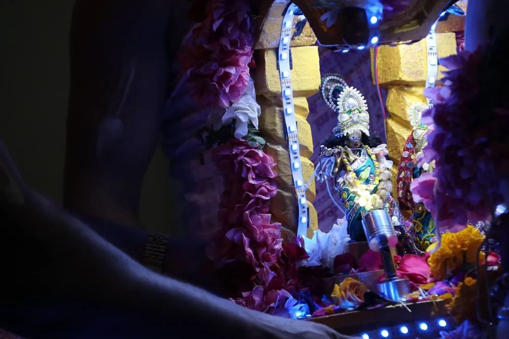 Throughout the entire festival, transcendental bhajans glorifying the divine couple Śrī Śrī Rādhā Kṛṣṇa are sung by devotees and everybody is welcome to participate in them. A sumptuous prasādam feast will then be served to all the devotees and guests.